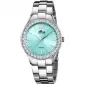 Tieto dámske hodinky zapôsobia elegantným a moderným dizajnom. Majú okrúhle puzdro z nehrdzavejúcej ocele, ktoré sa zmestí v štýle s jemným oceľovým popruhom v rovnakom tóne. Tyrkysový číselník s minimalistickými indexmi zdôrazňuje trblietavé zirkóny. Hodinky sú poháňané kremenným pohybom a chránené minerálnym sklom. Sú vhodné na každodenné nosenie a formálnejšie príležitosti.