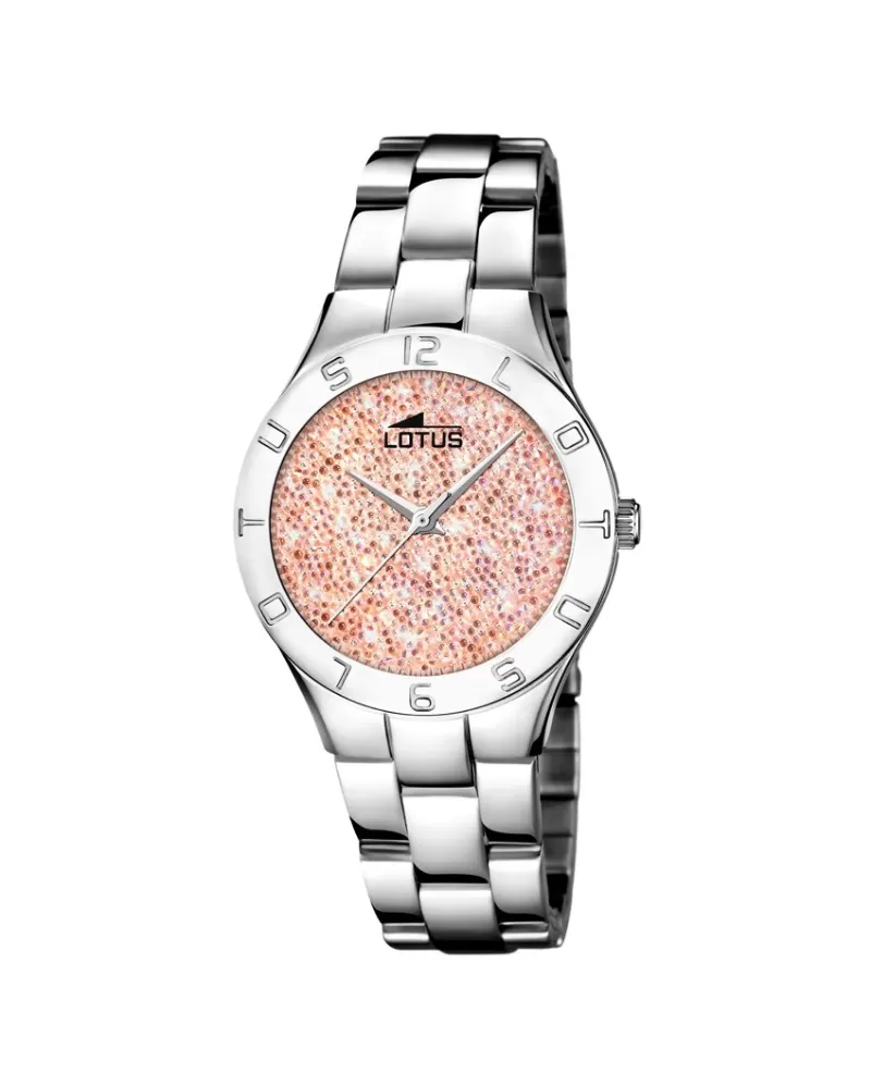 Každá žena sa chce páčiť a tento model je na to ako stvorený. Žiarivý číselník posiaty jemnými ružovými kamienkami Swarovski robí z nich niečo zvláštne keď sa blyští na ruke. Oceľová luneta je lemovaná názvom značky LOTUS.