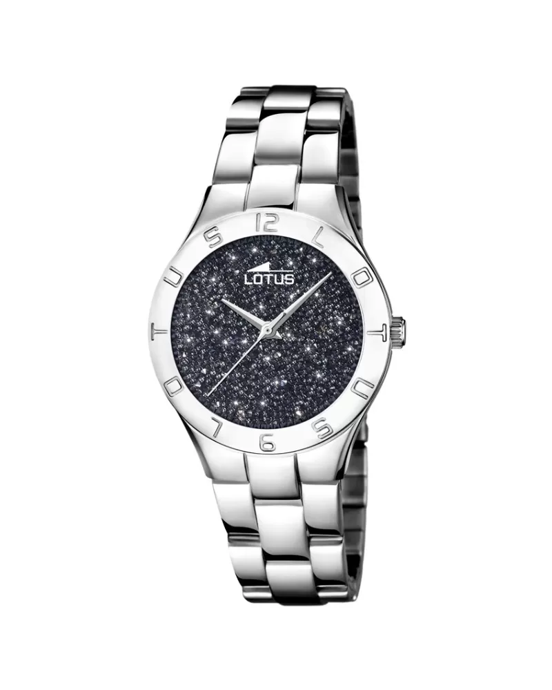 Každá žena sa chce páčiť a tento model je na to ako stvorený. Žiarivý číselník posiaty jemnými čiernymi kamienkami Swarovski robí z nich niečo zvláštne keď sa blyští na ruke. Oceľová luneta je lemovaná názvom značky LOTUS.