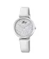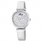 Nežne romantické hodinky v striebornom prevedení, s čistou jemnosťou číselníka, ktorý je posiaty kamienkami plného lesku. Remienok je v striebornom odtieni, sklíčko je minerálne.