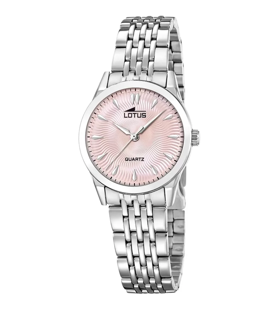 Dámske hodinky Lotus Classic Bracelet L19058/2 pôsobí elegantným a nadčasovým dojmom, ktorý sa hodí pre každodenný. Majú klasický analógový ciferník v čistom a prehľadnom prevedení, ktorý zaisťuje ľahkú čitateľnosť času. Oceľové puzdro aj náramok v striebornom tóne dodávajú modelu jemnú eleganciu a univerzálnosť. Minerálne sklíčko chráni ciferník pred drobnými škrabancami a bežným opotrebovaním. Hodinky sú navrhnuté tak, aby pohodlne sedeli na zápästí a zároveň podčiarkli ženský štýl. Celkový dizajn kombinuje jednoduchosť, praktickosť a vkusný luxus.