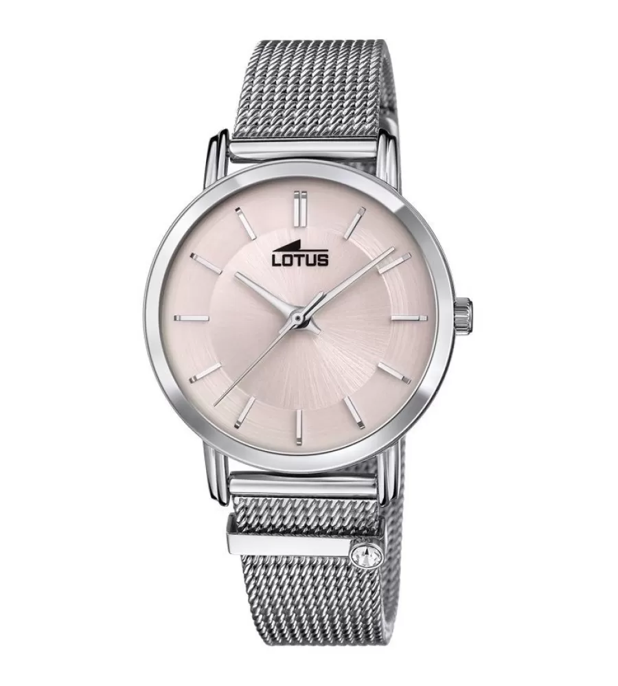 Hodinky Lotus L18737/2 z kolekcie Trendy predstavujú elegantný dámsky model, ktorý zaujme svojim čistým a nadčasovým dizajnom. Ružový ciferník je veľmi prehľadný a doplnený o jemné detaily, vrátane decentných indexov a drobných kamienkov, ktoré dodávajú hodinkám jemný lesk. Puzdro aj milánsky ťah sú vyrobené z kvalitnej nerezovej ocele, vďaka čomu hodinky pôsobia moderne a zároveň sú odolné pri každodennom nosení. Štýlový sieťovaný náramok sa pohodlne prispôsobí zápästiu a podčiarkuje ich elegantný charakter.