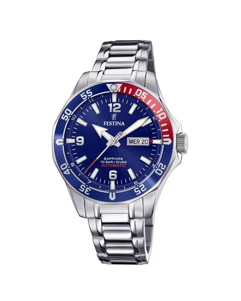 Pánske hodinky Festina Automatic. Jedinečný vzhľad hovorí sám za seba. Hodinky sú poháňané mechanickým pohybom. Kryt z nehrdzavejúcej ocele a nehrdzavejúca oceľ sú doplnené zafírovým sklom. Indexy na číselníku a ruky sú luminiscenčné.