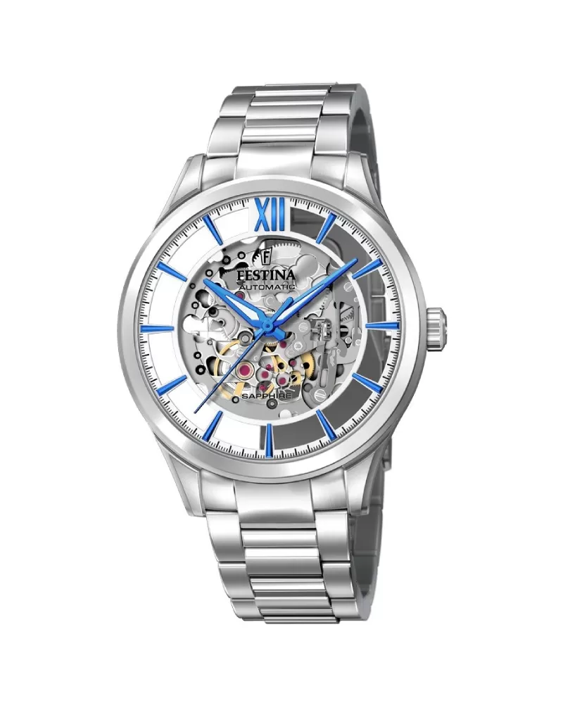Krásna a elegantná kolekcia automatických mechanických hodiniek Festina. Veľmi obľúbená kolekcia, ktorá v sebe ukrýva kus pravých tradičných hodiniek. Nosenie automatického mechanického strojčeka na zápästí je pre milovníkov hodiniek doslova pokladom. V prípade dámskych modelov sa dokonca môžeme pozrieť na mechanický strojček cez otvor na ciferníku na prednej strane hodiniek.