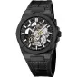 Hodinky jsou sportovně-elegantní pánský model s automatickým strojkem, který kombinuje precizní mechaniku s moderním vzhledem. Robustní pouzdro o průměru 42 mm je doplněno odolným safírovým sklíčkem a průhledným dýnkem, které umožňuje sledovat chod strojku. Řemínek je vyroben z kombinace kůže a gumy pro pohodlné nošení. Hodinky jsou vodotěsné do 10 ATM, takže zvládnou plavání i běžný kontakt s vodou. Mechanický strojek s automatickým nátahem má rezervu chodu přibližně 38 hodin a luminiscenční povrch ruček a indexů zajišťuje dobrou čitelnost i za horšího světla.