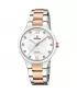 Trblietavé kamienky, ktoré sú posadené na pozíciách indexov v kombinácii s oceľovým remienkom v bicolor strieborno-ružovej PVD úprave. . Táto kolekcia vyniká ženskými modelmi plné zmyselných detailov a príjemných farieb.