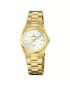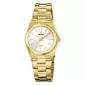 Dámske quartzové hodinky na oceľovom ťahu s PVD úpravou zlatej farby, ktorá jemne kontrastuje s bielym číselníkom. Vodotesnosť dosahujúca 50 metrov umožňuje plávanie.
