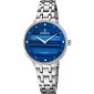 Elegantné dámske hodinky s 5 atmosfratom na oceľovom zákrute. Modrý číselník je zdobený rukami vo farbe puzdra a štyrmi zirkónmi v pozíciách 3, 6, 9 a 12 hodín.