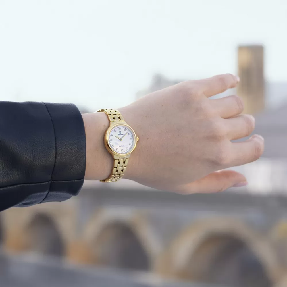 Hodinky Festina zaujmú svojim čistým a elegantným dizajnom, ktorý nikdy nevyjde z módy. Jemné detaily dodávajú modelu sofistikovaný vzhľad vhodný na každú príležitosť. Hodinky s vodotesnosťou 50 metrov a odolným zafírovým sklíčkom. Skvele doplnia ako každodenný outfit, tak aj slávnostnejší štýl. Sú ideálnou voľbou pre ženy, ktoré hľadajú nadčasový a štýlový doplnok.