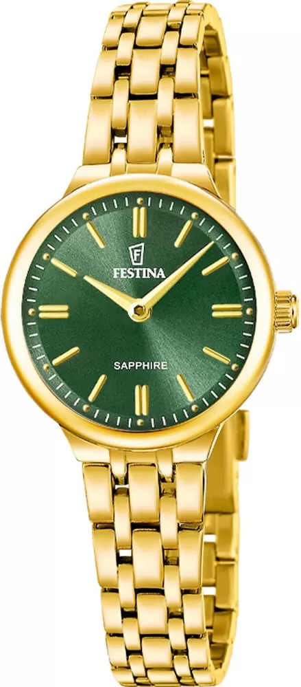 Hodinky Festina zaujmú svojim čistým a elegantným dizajnom, ktorý nikdy nevyjde z módy. Jemné detaily dodávajú modelu sofistikovaný vzhľad vhodný na každú príležitosť. Hodinky s vodotesnosťou 50 metrov a odolným zafírovým sklíčkom. Skvele doplnia ako každodenný outfit, tak aj slávnostnejší štýl. Sú ideálnou voľbou pre ženy, ktoré hľadajú nadčasový a štýlový doplnok.