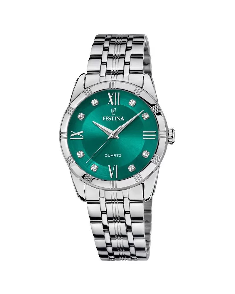 Značka Festina sa pýši viac ako storočnou tradíciou na svetovom trhu, ktorá začína roku 1902 v jednej švajčiarskej hodinárskej manufaktúre v mestečku La Chaux de Fonds. Venovala sa výrobe mechanických hodiniek a to do roku 1984, kedy značku prevzal Miguel Rodriquez a začal aj so stojkami quartzovými. Teraz je značka Festina súčasťou skupiny Festina Group so sídlom v Barcelone a s výrobnými centrami vo Švajčiarsku, Španielsku a Ázii. Svoje hodinky dodáva do hodinárstva po celom svete. Do povedomia zákazníkov sa zapísala predovšetkým modelovým radom Tour de France. Festina Vám však môže ponúknuť celé spektrum dámskych aj pánskych modelov od športových, ako je rad Tour de France, tak aj elegantná kolekcia ako je Mademoiselle. Hodinky značky FESTINA nikdy nezameníte s inou značkou. Sú originálne, nápadité a budú zároveň aj dokonalým šperkom. Švajčiarska značka hodiniek FESTINA vyniká svojim moderným dizajnom a prvotriednou kvalitou. A to všetko za veľmi priaznivú cenu.