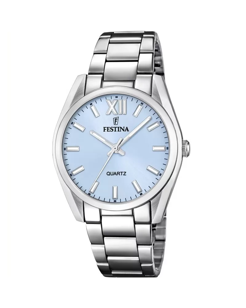 Klasické hodinky Festina sú vyrobené z chirurgickej ocele, ktorá je známa svojimi skvelými vlastnosťami. Oceľ je veľmi pevná, húževnatá a antialergická. Tento model dámskych hodiniek poteší ženy čo si nepotrpia na výstredné doplnky a hľadajú hlavne praktickosť a eleganciu. Hodinky majú okrúhle puzdro s modrým ciferníkom a hladkými indexmi hodín. Indexy hodín aj ručičky majú luminiscenčnú vrstvu, ktorá poslúži pri sledovaní času v noci. Hodinky sa zapínajú na preklápaciu sponu.