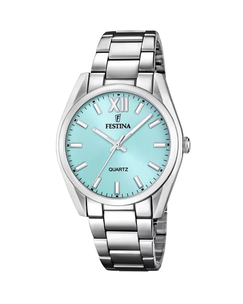 Klasické hodinky Festina sú vyrobené z chirurgickej ocele, ktorá je známa svojimi skvelými vlastnosťami. Oceľ je veľmi pevná, húževnatá a antialergická. Tento model dámskych hodiniek poteší ženy čo si nepotrpia na výstredné doplnky a hľadajú hlavne praktickosť a eleganciu. Hodinky majú okrúhle puzdro s modrým ciferníkom a hladkými indexmi hodín. Indexy hodín aj ručičky majú luminiscenčnú vrstvu, ktorá poslúži pri sledovaní času v noci. Hodinky sa zapínajú na preklápaciu sponu.