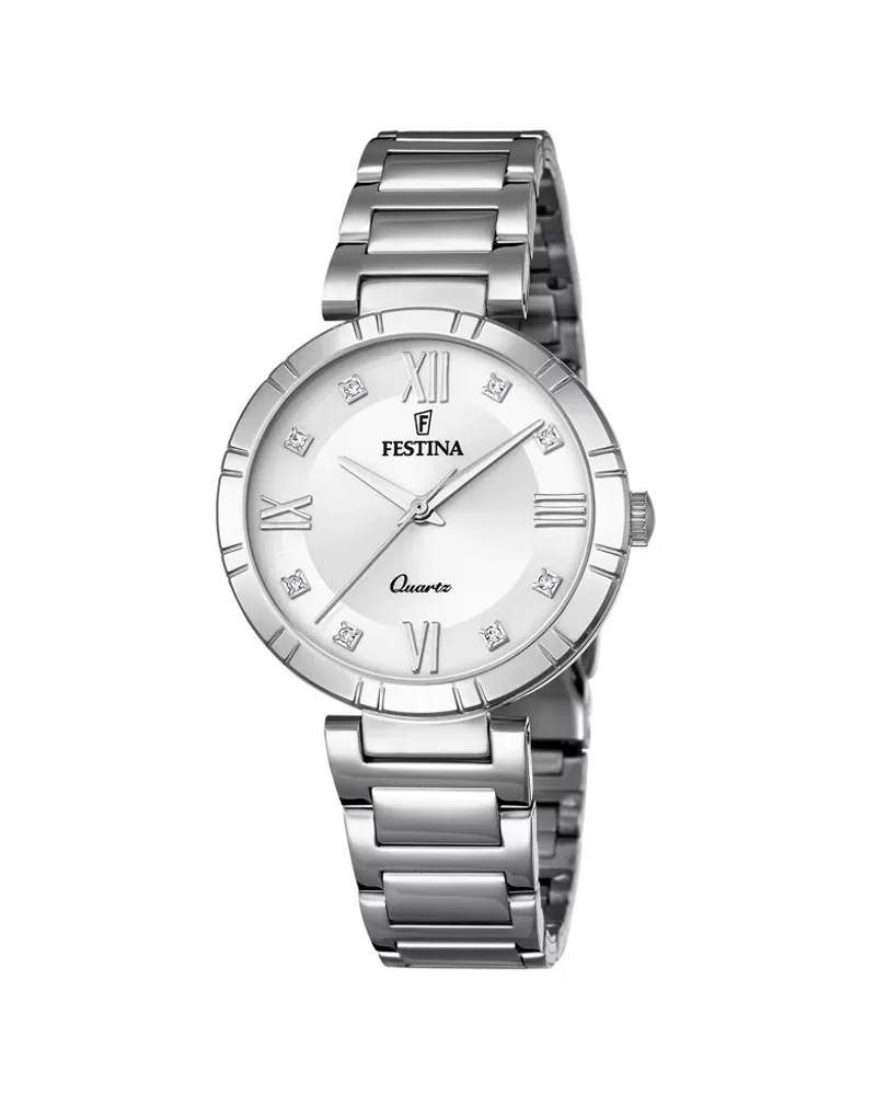 Moderní dámské hodinky FESTINA z kolekce TREND. Hodinky jsou z nerezové oceli se stříbrným ciferníkem. Hodinky lze nosit jak k elagtnímu tak i ke sportovnímu oblečení.