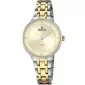 Elegantný model dámskych hodiniek je vyrobený z chirurgickej ocele, ktorá je na miestach pozlátených technológiou PVD v žltom zlate. Výhodou pozlátenia PVD technológií je vysoká odolnosť proti tvrdosti a oderu! Je to hrubá vrstva, ktorá preniká do pôvodného materiálu. Technológie PVD sa dajú porovnávať s približne 12 mikrónmi galvanického zlatovania, čo je vysoká hodnota, ktorá trvá až 12 rokov pri normálnom opotrebení. Hodinky majú okrúhle puzdro s čírym číselníkom, ktorý je zdobený kameňmi nakrájanými do brilantného strihu.