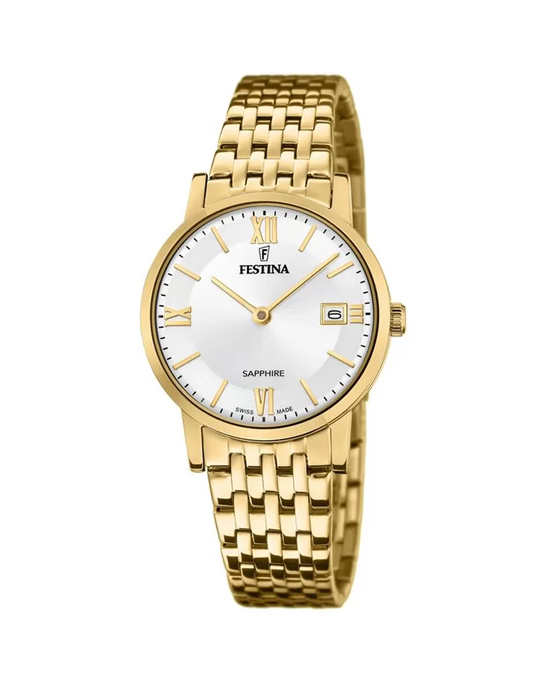 Festina Vám však môže ponúknuť celé spektrum dámskych aj pánskych modelov od športových, ako je rad Tour de France, tak aj elegantná kolekcia ako je Mademoiselle. Hodinky značky FESTINA nikdy nezameníte s inou značkou.