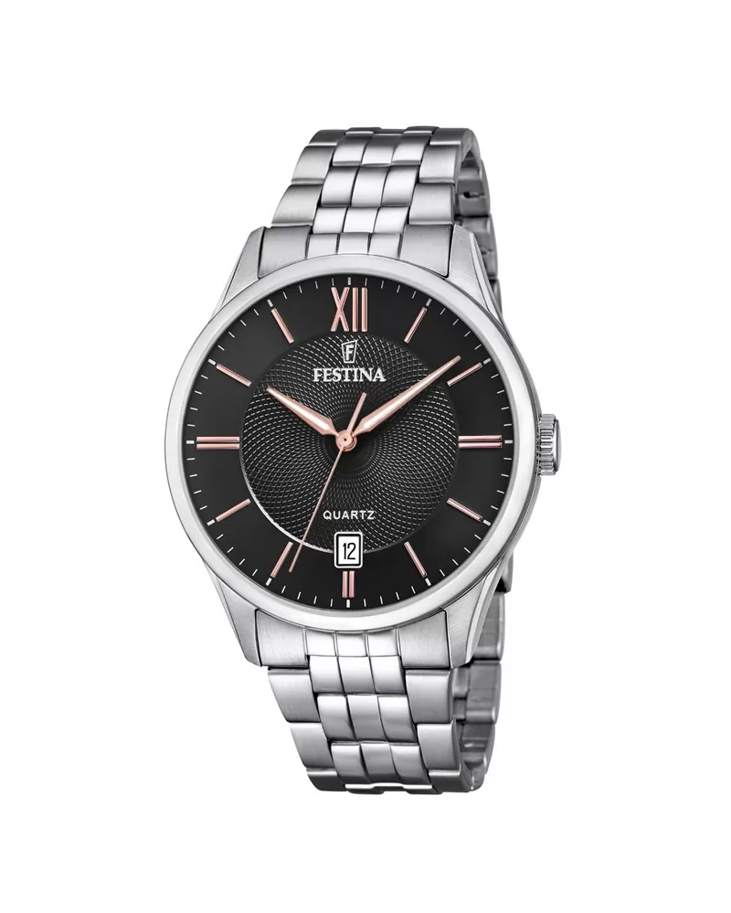 Pánske hodinky z kolekcie Classic Bracelet sú veľmi obľúbené medzi mužmi. Nájdete tu číselníky s hladkými indexmi alebo arabskými číslicami as sekundovými rúčkami. Nájdete tu veľký výber s datumkou, s ukazovateľom dňa v týždni, s koženými remienkami a ťahmi s povrchovou úpravou PVD. Vodotesnosť u hodiniek je medzi 5 atm až 10 atm. Kto nehľadá výstrednosť, ale ocenia jednoduchý dizajn, decentnosť, prehľadnosť v klasickom štýle, tak našiel tú pravú kolekciu hodiniek Festina.