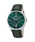 Pánske quartzové hodinky v elegantnom dizajne s oceľovým puzdrom a koženým remienkom. Na smaragdovo zelenom číselníku, ktorý je chránený minerálnym sklom, vynikajú kontrastné ručičky a indexy vo farbe ružového zlata. Hodinky disponujú funkciou ukazovateľa dátumu.