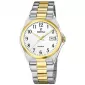 Pánske quartzové hodinky na oceľovom ťahu s čiastočnou PVD úpravou zlatej farby, ktorá jemne kontrastuje s bielym číselníkom. Vodotesnosť dosahujúca 50 metrov umožňuje plávanie.