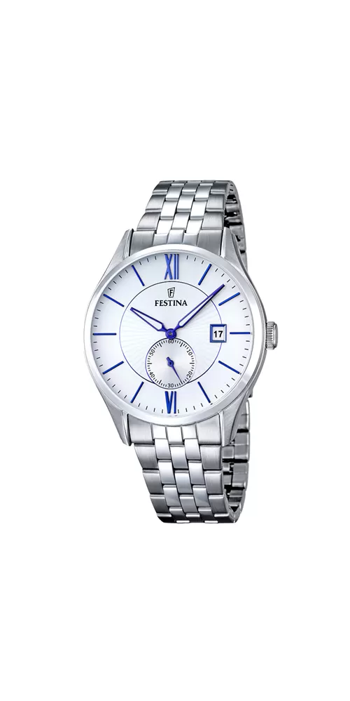 Klasický model z kolekcie KLASIK obľúbenej značky FESTÍNA pre mužov. Hodinky budú vkusným doplnkom do spoločnosti. Hodinky sú s oceľovým remienkom a ďalej disponujú ukazovateľom dátumu.