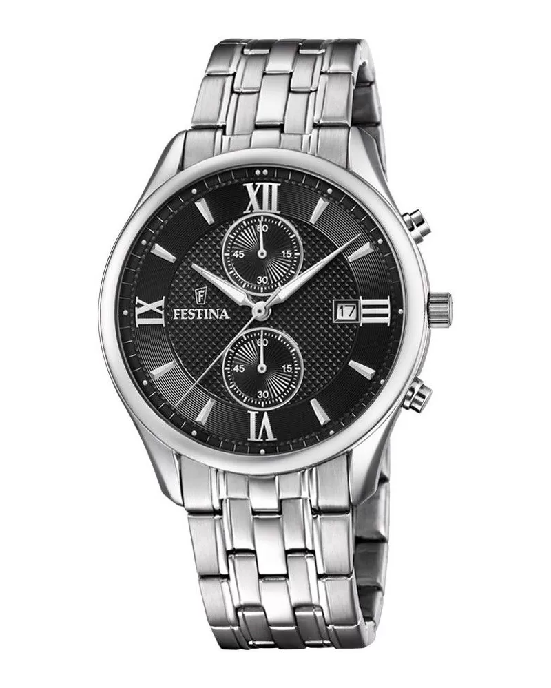U tohto modelu pánskych hodiniek Festina z kolekcie Retro sa rozhodne na prvý pohľad podarila kombinácia klasickej elegancie so športovými funkciami. Veľmi vkusné sú dva subciferníky na pozícii šiestej a dvanástej hodiny, ktoré zobrazujú sčítače chronografov. Aj rímske číslice idú opäť do módy, preto ich tento model obsahuje.