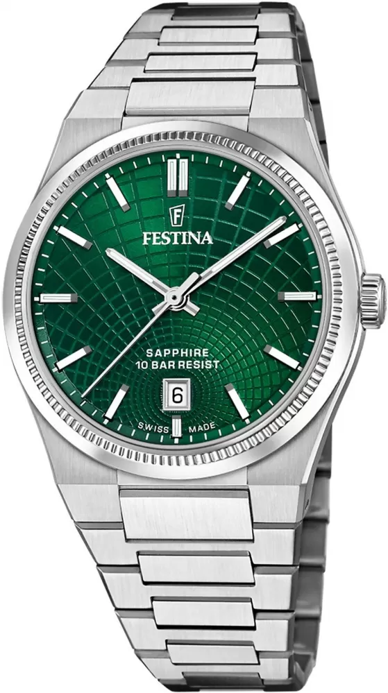 Hodinky Festina predstavujú symbol prestíže a kvality, ktoré sa spájajú v jedinečnom dizajne a precíznom spracovaní. Táto značka s bohatou históriou, siahajúca až do roku 1902, je známa svojimi spoľahlivými strojčekmi a elegantným štýlom, ktorý oslovuje ako milovníkov klasiky, tak moderného dizajnu. Festina sa preslávila aj ako oficiálna časomiera cyklistických pretekov Tour de France, čo podčiarkuje jej záväzok k presnosti a výkonu. Hodinky Festina sú vyrábané s dôrazom na detaily, využívajú kvalitné materiály, ako je nerezová oceľ, zafírové sklo a prvotriedne kožené remienky. Značka ponúka širokú škálu modelov, od elegantných spoločenských hodiniek po športové chronografy. Festina je tak ideálnou voľbou pre tých, ktorí hľadajú spoľahlivosť, štýl a prestíž v jednom.