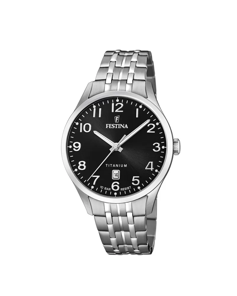 Krásne, jednoduché a veľmi elegantné hodinky Festina nájdete v kolekcii Titanium Date. Z titánu majú ako celé puzdro tak niektoré modely aj ťah. Odolné a ľahké hodinky v klasickom prevedení ocení každý elegantný muž či žena. V kolekcii nájdete mnoho variantov prevedenia. Od 5 až po 10 atmosfér vodotesnosti, rôzne veľkosti číselníka a rôzne varianty remienka. Spoznajte celú kolekciu titánových hodiniek Festina Titanium Date.