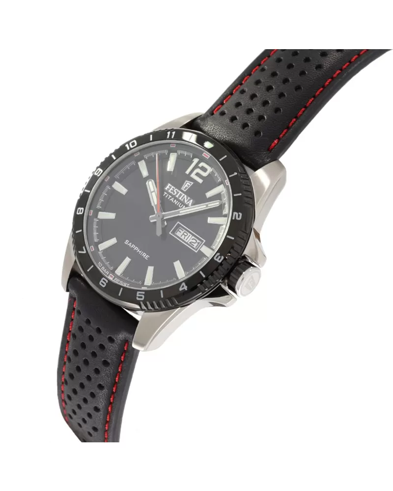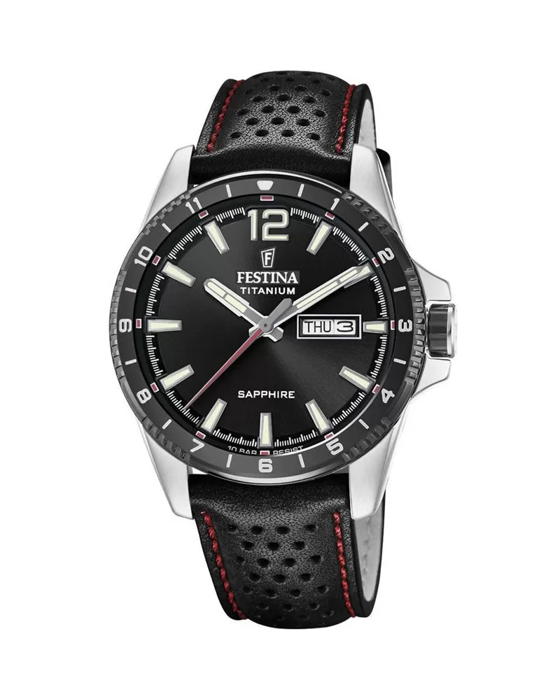 Nový model pánskych hodiniek Festina poteší najmä alergikov na základné kovy. Puzdro hodiniek je vyrobené z titánu, ktorý má výnimočné vlastnosti a jednou z nich je ľahkosť, odolnosť a tiež to, že je antialergický. Puzdro hodiniek zdobí výrazná luneta. Ďalšou výhodou tohto modelu sú hodinové indexy potiahnuté luminiscenčnou vrstvou. Na hodinky teda po rozsvietení uvidíte aj v tme. Chýbať nemôže dátumovka, ktorá sa nachádza na pozícii tretej hodiny. Ciferník je chránený zafírovým sklom, o ktorom je známe, že je vysoko odolné. Celý tento model je podčiarknutý koženým remienkom, ktorý na prvý pohľad sľubuje maximálne pohodlie.