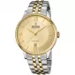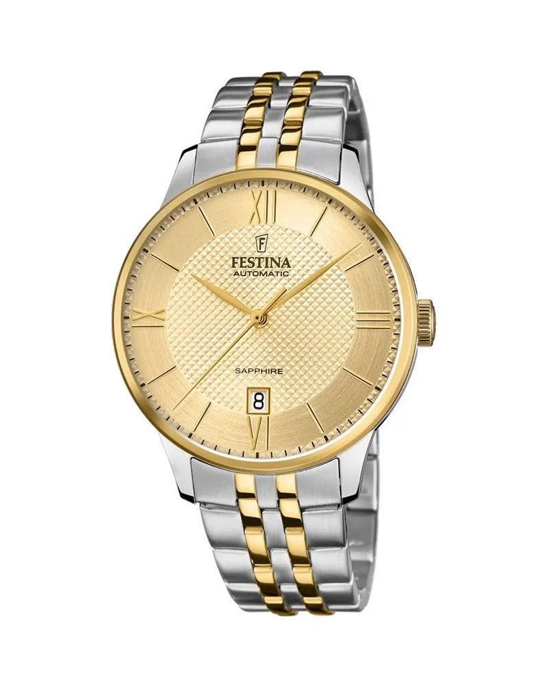 Hľadáte pohodlné automatické hodinky? To vás poteší s kruhovými oceľovými hodinkami, ktoré skrývajú mechanický stroj na automatickom napätí, takže pohyb ruky počas normálneho opotrebenia neustále zabezpečí utiahnutie hodiniek. Dobre usporiadaný číselník obsahuje zvýraznené indexy hodín a rímske číslice so zlatom, v ktorých sú tiež hodinové ruky. Diama má tiež dátum umiestnený o šiestich hodinách. Celý model je doplnený oceľovým popruhom v kombinácii s PVD pozlátením.