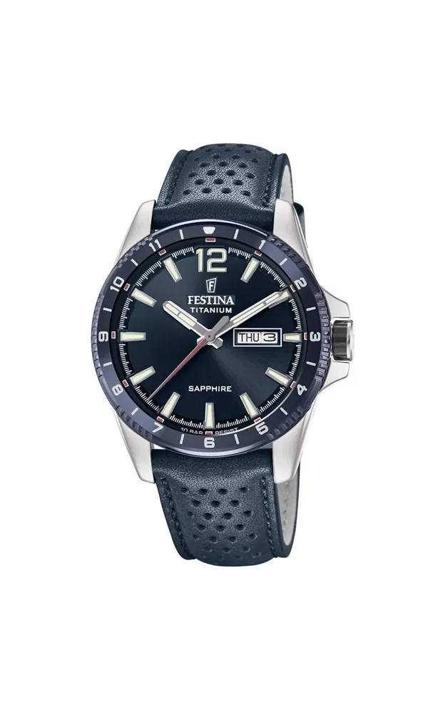 Nový model pánskych hodiniek Festina poteší najmä alergikov na základné kovy. Puzdro hodiniek je vyrobené z titánu, ktorý má výnimočné vlastnosti a jednou z nich je ľahkosť, odolnosť a tiež to, že je antialergický. Puzdro hodiniek zdobí výrazná luneta. Ďalšou výhodou tohto modelu sú hodinové indexy potiahnuté luminiscenčnou vrstvou. Na hodinky teda po rozsvietení uvidíte aj v tme. Chýbať nemôže dátumovka, ktorá sa nachádza na pozícii tretej hodiny. Ciferník je chránený zafírovým sklom, o ktorom je známe, že je vysoko odolné. Celý tento model je podčiarknutý koženým remienkom, ktorý na prvý pohľad sľubuje maximálne pohodlie.
