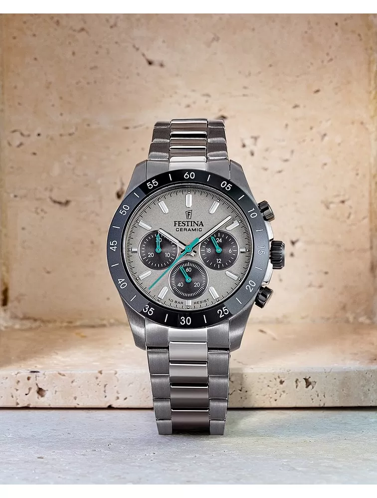 Kolekcia Ceramic od Festiny je na vysokej úrovni vďaka kombinácii ušľachtilej ocele a odolnej keramiky, ktorá sa nepoškriabe. Tieto hodinky nie sú len praktickým doplnkom, ale aj módnym kúskom, ktorý zaujme. Kolekcia sa zameriava na modrú, čiernu, bielu a striebornú farbu, doplnenú o prvky ružového zlata. Páni ocenia športovejší variant chronografov s oceľovým puzdrom a keramickou lunetou na oceľovom alebo kaučukovom remienku. Táto kolekcia je zárukou spokojnosti a štýlu.