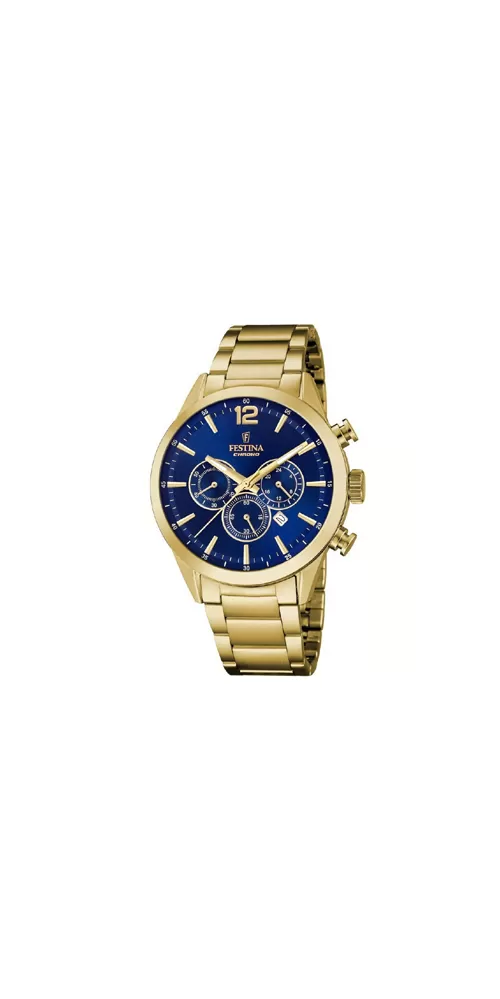 Masívne športové hodinky Festina zaujmú spracovaním, výrazným puzdrom a pozlátením vo farbe žltého zlata. Doprajte si tieto hodinky.