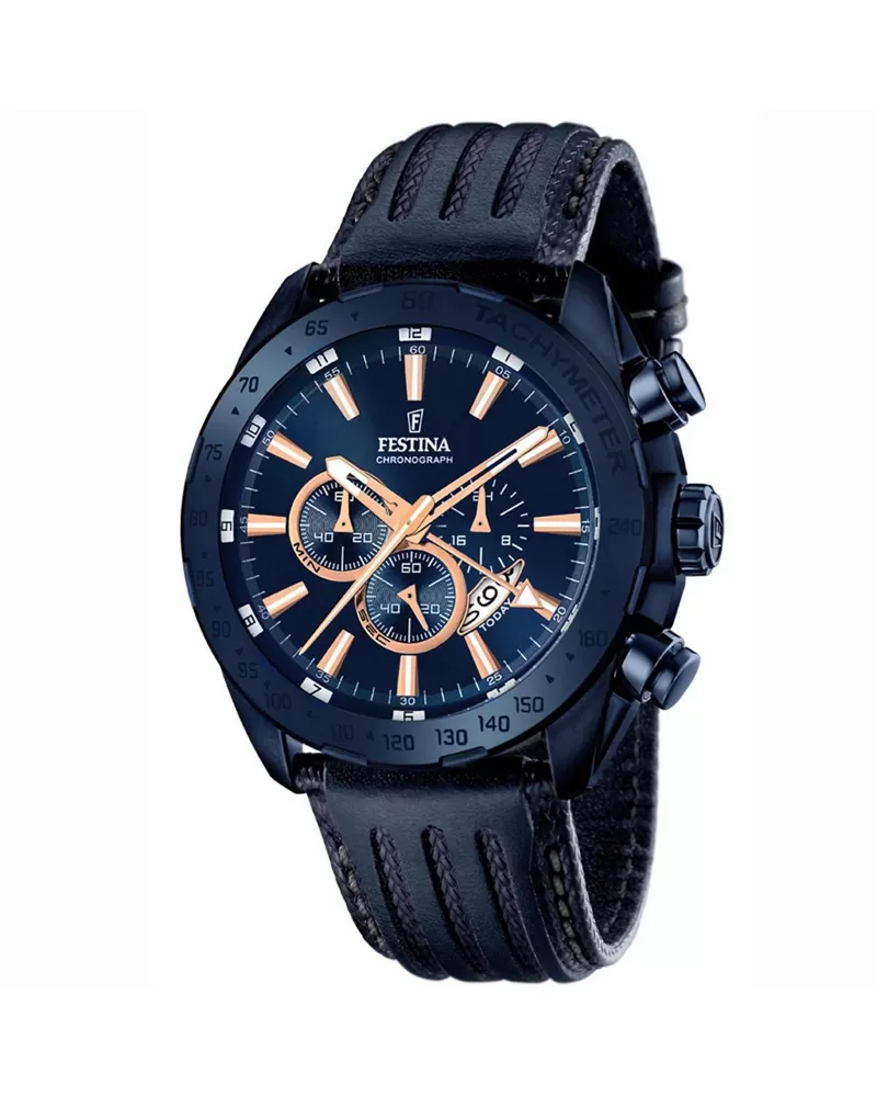 Luxusný model z kolekcie CHRONO 16898/1 obľúbenej pánskej značky FESTINA. Hodinky budú štýlovým doplnkom pri športe aj pri spoločenských stretnutiach. Hodinky majú modrý remienok z pravej kože. Ciferník je tiež modrý a hodinky majú aj stopky, tachymeter, dátumovku a 24-hodinový ciferník.