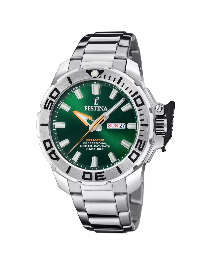 Pánske quartzové hodinky, ktoré majú dátumovku s dňom v týždni. Vodotesnosť je 20 ATM, takže sú hodinky vhodné na potápanie do hĺbky 50 metrov. Hodinky majú zafírové sklíčko. Hodinky majú oceľový ťah a oceľové púzdro.