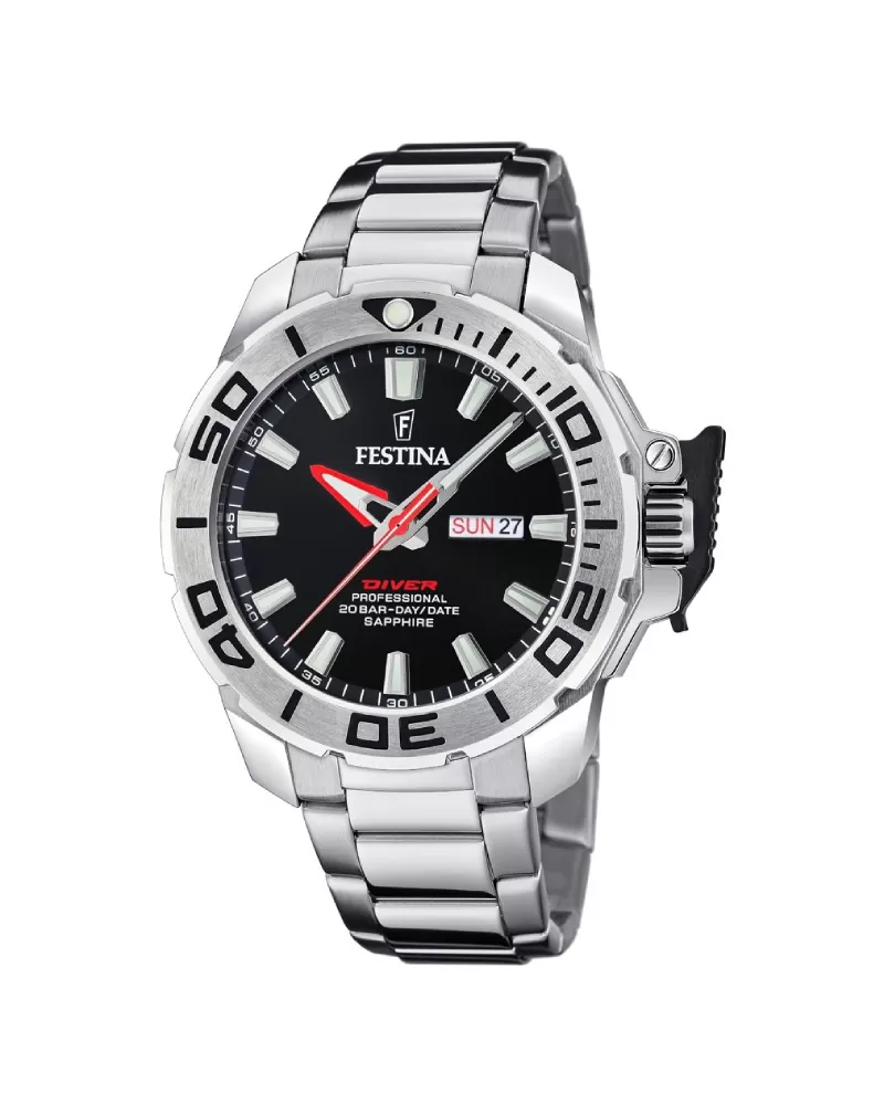 Pánske quartzové hodinky, ktoré majú dátumovku s dňom v týždni. Vodotesnosť je 20 ATM, takže sú hodinky vhodné na potápanie do hĺbky 50 metrov. Hodinky majú zafírové sklíčko. Hodinky majú oceľový ťah a oceľové púzdro.