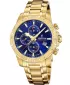 Pánska športová batéria hodinky na oceľovom náramku s oceľovým puzdrom s priemerom 45 milimetrov. Puzdro a náramok majú PVD upravujúcu farbu zlata. Blue Dial s ukazovateľom času v 24 -hodinovom formáte, stopky a dátumovej známke.