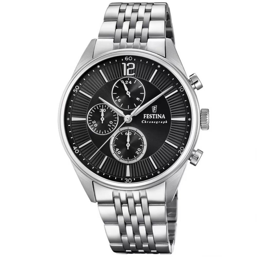 Športový model z kolekcie Timeless Chronograph 20285/4 obľúbenej značky FESTÍNA pre mužov. Hodinky budú vkusným doplnkom do spoločnosti, na každodenné nosenie aj na športovanie. Hodinky sú v celooceľovom prevedení a ďalej disponujú stopkami a 24 hodinovým ciferníkom. Nechýba ani potrebná dátumovka.
