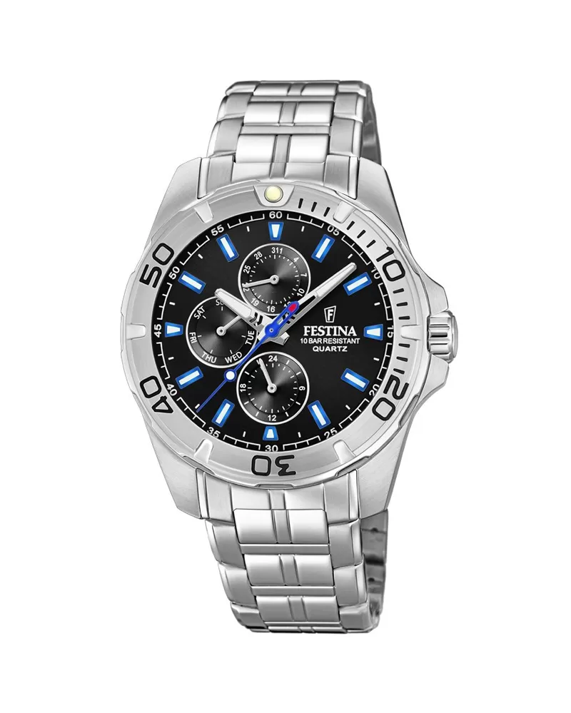 Pánske multifunkčné hodinky vyrobené z ušľachtilej ocele osadené minerálnym sklíčkom. S vodotesnosťou 10 Atm sú ideálne na kúpanie. Značka Festina… Celý popis