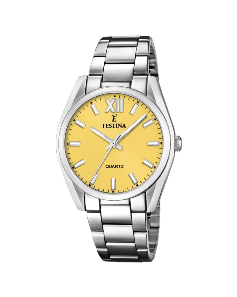 Značka Festina sa pýši viac ako storočnou tradíciou na svetovom trhu, ktorá začína roku 1902 v jednej švajčiarskej hodinárskej manufaktúre v mestečku La Chaux de Fonds. Venovala sa výrobe mechanických hodiniek a to do roku 1984, kedy značku prevzal Miguel Rodriquez a začal aj so stojkami quartzovými. Teraz je značka Festina súčasťou skupiny Festina Group so sídlom v Barcelone a s výrobnými centrami vo Švajčiarsku, Španielsku a Ázii. Svoje hodinky dodáva do hodinárstva po celom svete. Do povedomia zákazníkov sa zapísala predovšetkým modelovým radom Tour de France. Festina Vám však môže ponúknuť celé spektrum dámskych aj pánskych modelov od športových, ako je rad Tour de France, tak aj elegantná kolekcia ako je Mademoiselle. Hodinky značky FESTINA nikdy nezameníte s inou značkou. Sú originálne, nápadité a budú zároveň aj dokonalým šperkom. Švajčiarska značka hodiniek FESTINA vyniká svojim moderným dizajnom a prvotriednou kvalitou. A to všetko za veľmi priaznivú cenu.