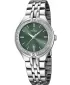 Dámske batériové hodinky na oceľovom náramku vhodné na každodenné nosenie. Zelený ciferník chránený minerálnym sklom obopína luneta zdobená čírymi zirkónmi. Hodinky disponujú ukazovateľom dátumu a vodotesnosťou 5 ATM.