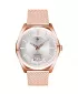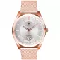 Tmavosivý ciferník upúta originálne pojatou dátumovkou a zlatými ručičkami. Puzdro je vyrobené z ušľachtilej ocele a hodinky sa pripínajú milánskym ťahom, ktorý je obľúbený pre svoju prispôsobivosť každému zápästiu, bez nutnosti odborného skracovania. Oceľ je ošetrená PVD povrchovou úpravou vo farbe ružového zlata. Zaobstarajte si módny doplnok, ktorý podčiarkne vašu osobnosť.