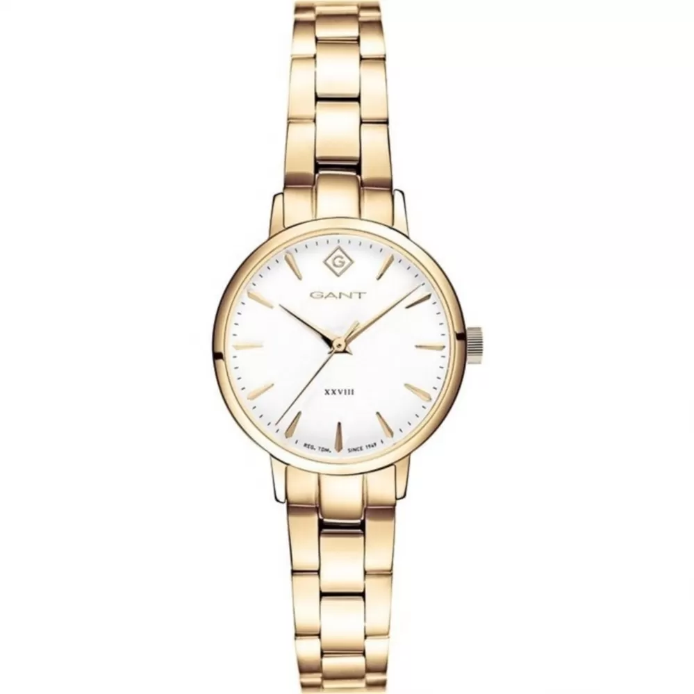 Módna značka GANT predstavuje model G126004, ktorý vyniká svojou eleganciou a klasickým spracovaním. Jednoduchý biely ciferník je zdobený indexmi v zlatej farbe. Puzdro aj remienok sú vyrobené z ocele s PVD pozlátením. Hodinky sa Vám budú hodiť na všetky príležitosti.