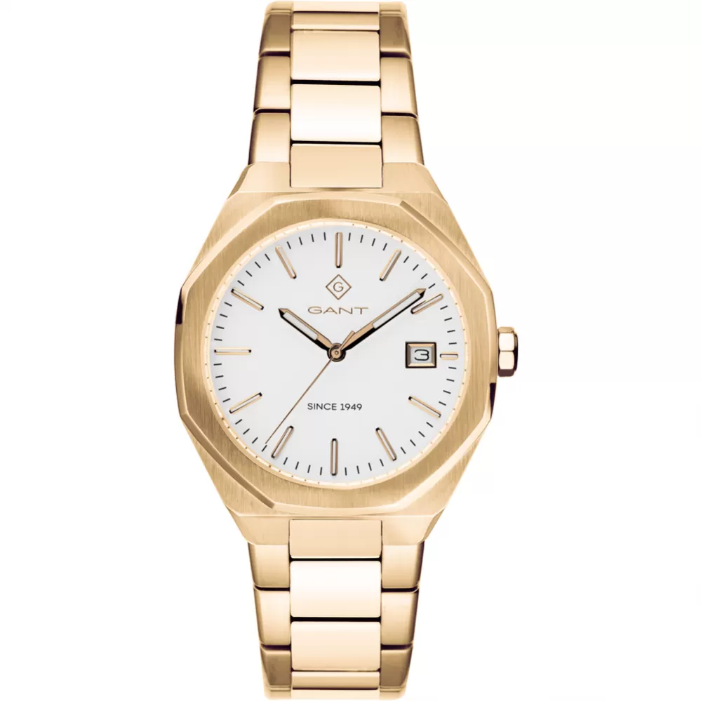 Originálne dámske hodinkyGANT Quincy LadyG164004 s puzdrom v tvare osemhranu. Hodinky pôsobia veľmi elegantným dojmom a budú tým pravým doplnkom do Vašej šperkovnice. Hodinky sú v celooceľovom prevedení s PVD pozlátením a zdobí ich biely ciferník s dátumovkou v minimalistickom štýle. Tieto hodinky sa Vám budú hodiť na všetky príležitosti.