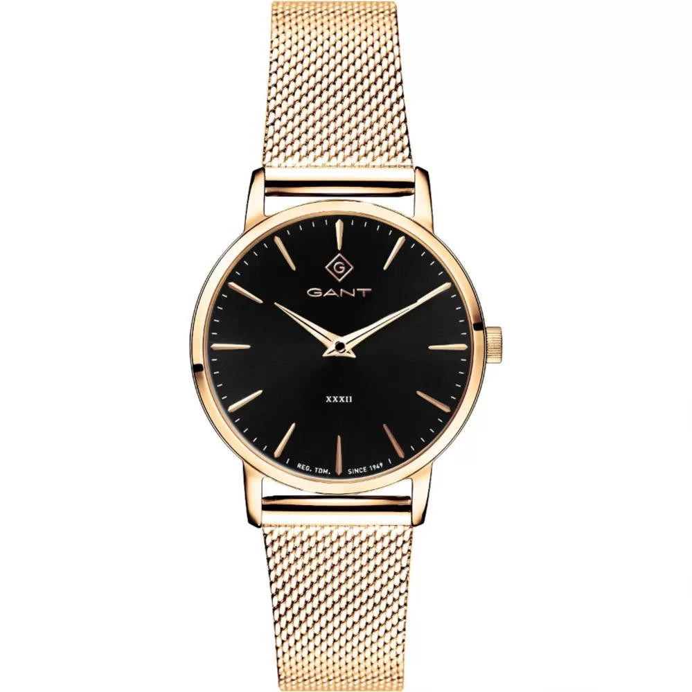 Dámske náramkové hodinky Gant sú navrhnuté tak, aby skvele padli ženskému zápästiu. Hodinky sú vyrobené z vysoko kvalitnej nerezovej ocele. Oceľ je ošetrená PVD povrchovou úpravou vo farbe žltého zlata. Okrúhle púzdro je vybavené spoľahlivým strojčekom a batériou s dvojročnou životnosťou. Čierny číselník má k dispozícii jednoduché ručičky a indexy hodín. Hodinky sú vhodné na každodenné nosenie aj do spoločnosti.