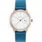 Športové dámske hodinky zaujmú farebnú kombináciu. Okrúhle púzdro je vyrobené z vysoko kvalitnej nerezovej ocele a dopĺňa ho minimalistický číselník v bielej farbe, ktorý zvýrazňuje modrá sekundovka. Oceľ je ošetrená PVD povrchovou úpravou vo farbe žltého zlata. Textilný remienok v modrej farbe sľubuje komfort pri športe a bežnom nosení.