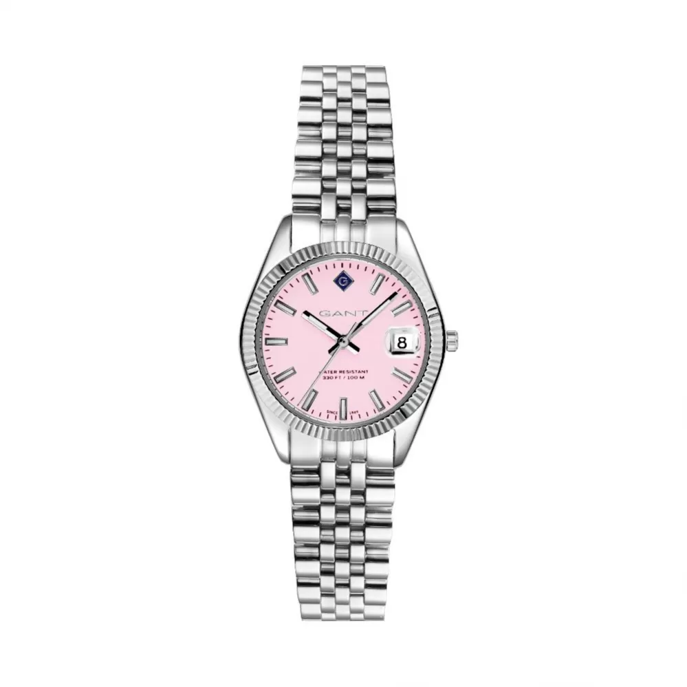 Decentné dámske náramkové hodinky Gant sú navrhnuté tak, aby skvele padli ženskému zápästiu. Hodinky sú vyrobené z vysoko kvalitnej nerezovej ocele. Okrúhle púzdro je vybavené spoľahlivým strojčekom a batériou s dvojročnou životnosťou. Ružový číselník má k dispozícii jednoduché ručičky a indexy hodín. Na pozícii tretej hodiny nájdete dátum. Hodinky sú vhodné na každodenné nosenie aj do spoločnosti.
