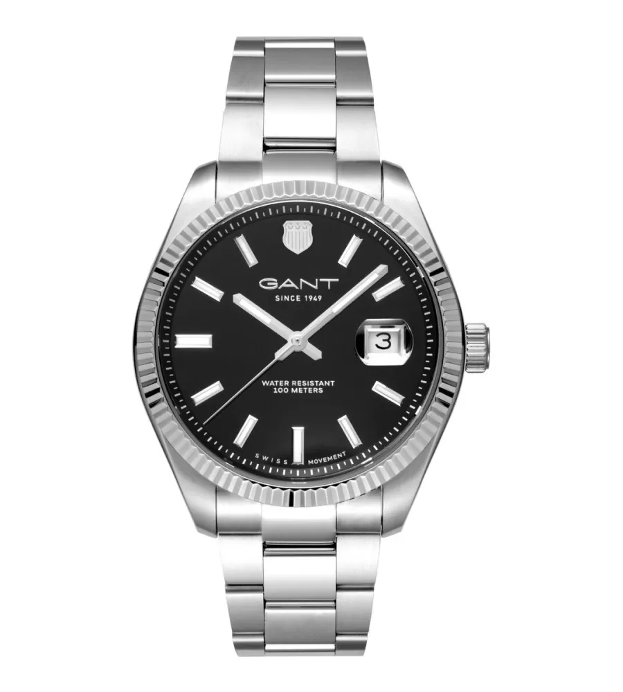 Gant P106001 sú pánske hodinky s čiernym číselníkom a elegantným oceľovým náramkom, ktorý zdôrazňuje minimalistický, ale sofistikovaný vzhľad. Puzdro z nehrdzavejúcej ocele má priemer 40 mm a hrúbku približne 9-10 mm, čo dáva hodinám vyvážený profil zápästia. Sú poháňané presným švajčiarskym pohybom Ronda 515, ktorý zaručuje spoľahlivú prevádzku a presnosť. Diama chráni odolné zafírske sklo, pod ktorým sú strieborné luminiscenčné ruky a indexy. V pozícii troch hodín je stanovený dátum a druhá ruka dopĺňa funkčnosť jednoduchým a jasným vzhľadom. Hodinky sú vodotesné 10ATM.