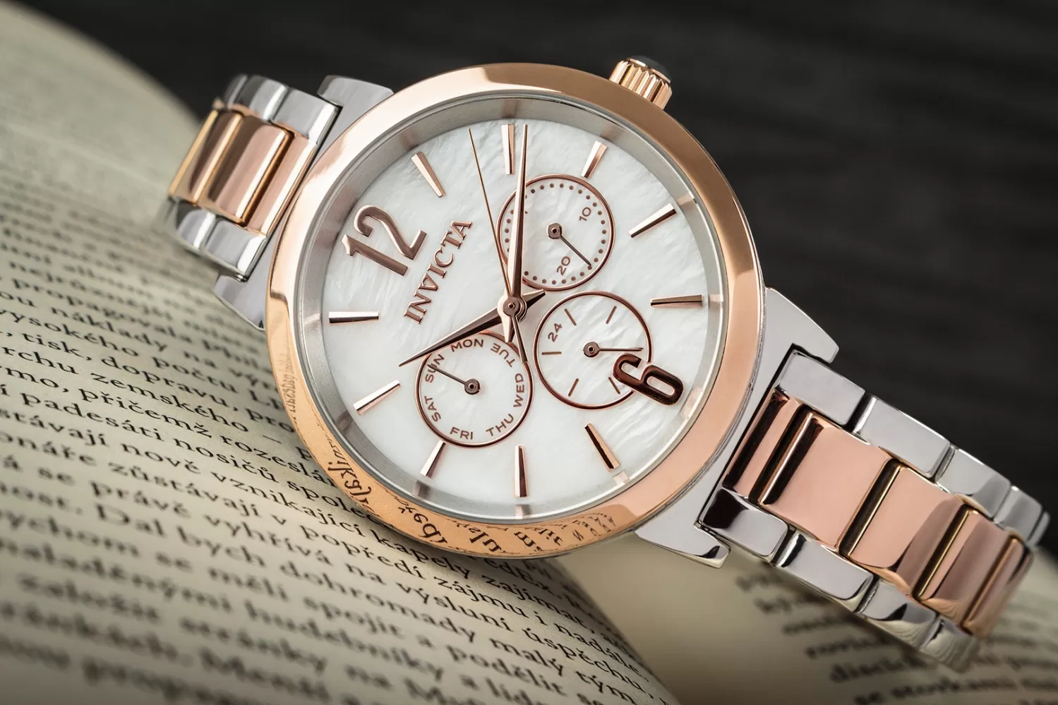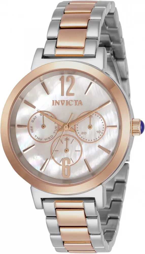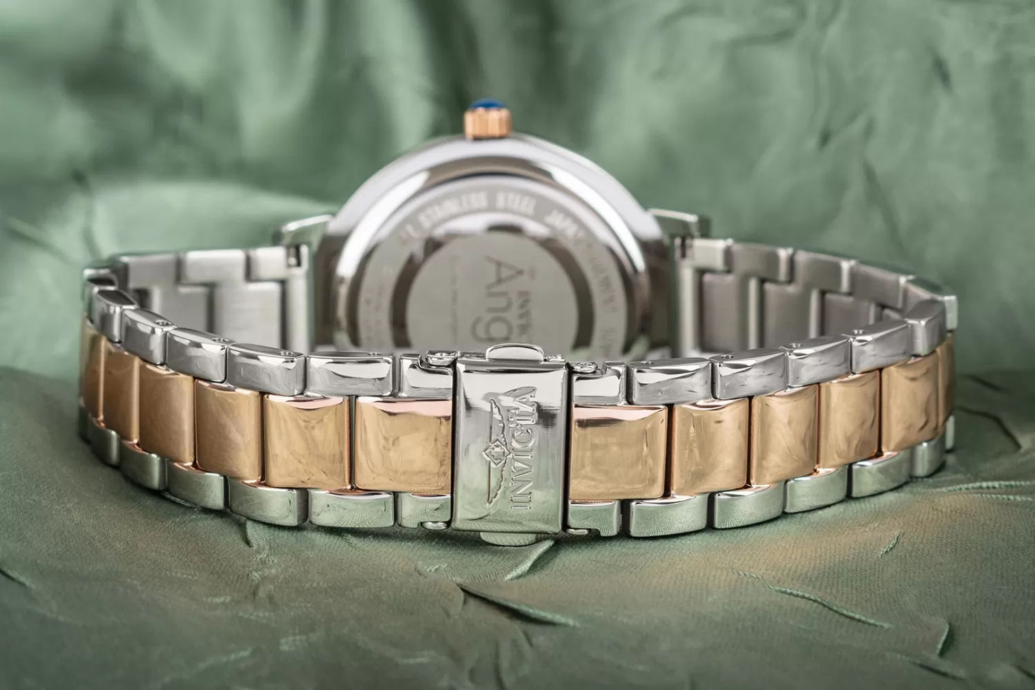 Dámsky, klasický model náramkových hodiniek je vyrobený z vysoko kvalitnej nerezovej ocele, ktorá je miestami ošetrená PVD povrchovou úpravou vo farbe ružového zlata. Hladké okrúhle púzdro skrýva japonský strojček Seiko VH63 a batérií so životnosťou dvoch rokov. Minerálne sklo chráni jednoduchý číselník, ktorý má k dispozícii dátum a dni v týždni. Vodotesnosť u tohto modelu je 50M.