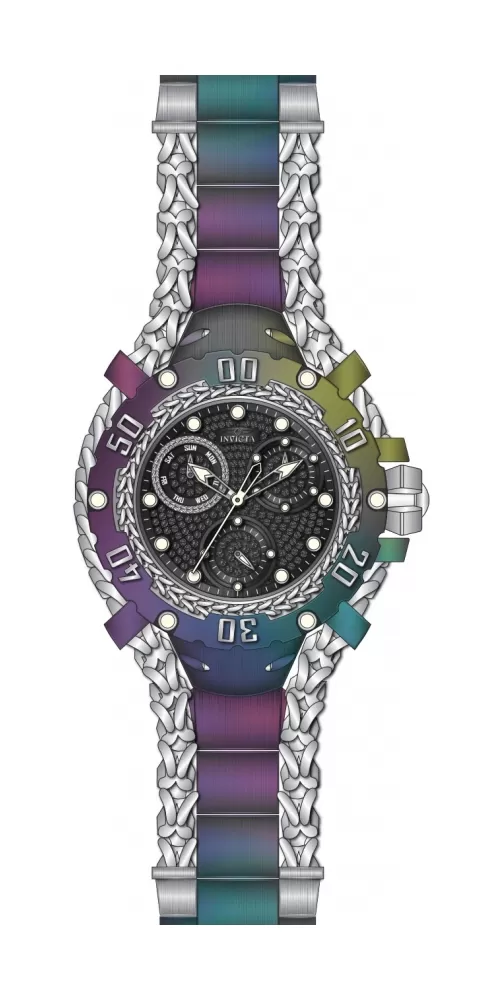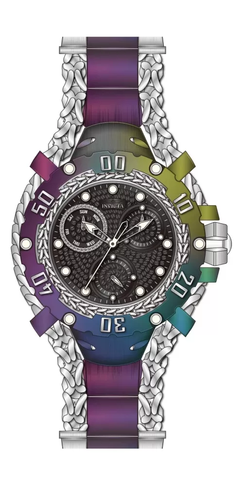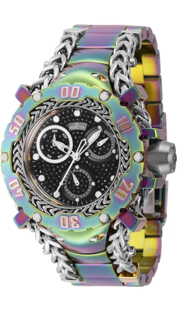 Luxusný a veľmi extravagantný model dámskych náramkových hodiniek je vyrobený z vysoko kvalitnej nerezovej ocele, ktorá je ošetrená PVD povrchovou úpravou. Hodinky zvýrazňuje retiazku, ktorá sa objavuje aj na číselníku. Čierny číselník vysadený pravými diamatmi v briliantovom bruse má k dispozícii dátum a dni v týždni. Tento model na Vašom zápätí nikto neprehliadne. Masívny dizajn a ligot diamantov budú priťahovať pohľady okolia.