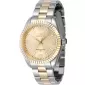 Elegantné dámske hodinky vyrobené z vysoko kvalitnej ocele, Vám dokonale ozdobia zápästie. Oceľ je miestami ošetrená PVD povrchovou úpravou vo farbe žltého zlata. Okrúhle púzdro je vybavené spoľahlivým japonským strojčekom a batériou s dvojročnou životnosťou. Minerálne sklíčko chráni zlatý číselník s jednoduchými ručičkami a indexmi hodín. Vodotesnosť u tohto modelu 50M.